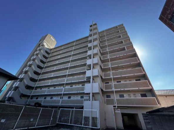 【外観】落ち着いた色調が周囲の街並みに調和する、14階建てのタイル貼りマンション。エントランスにはオートロックやTVモニタ付インターホンを備え、セキュリティ面も安心。管理が行き届いた綺麗な共用部が魅力。
